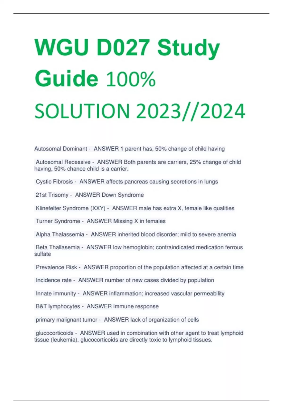 WGU D027 Study Guide 100% SOLUTION 2023//2024
