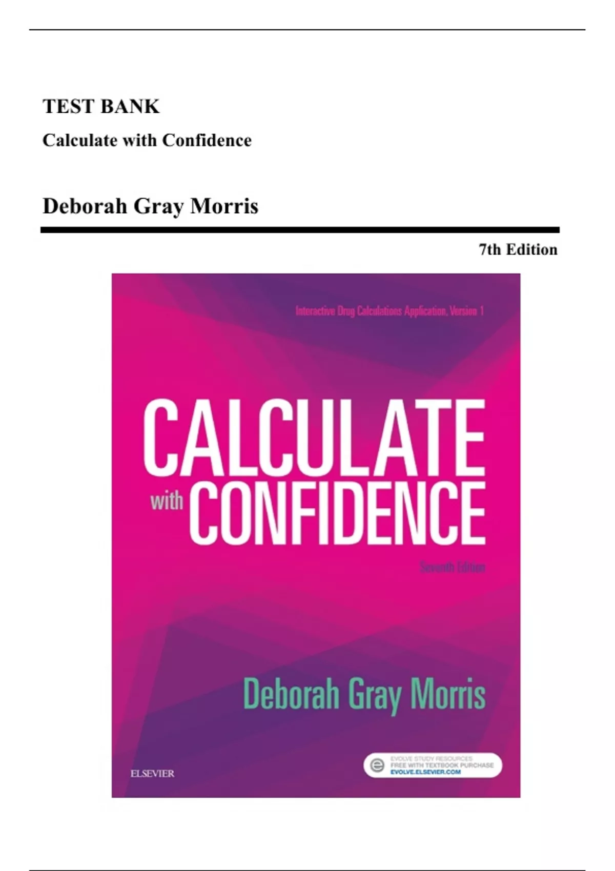 Test Bank - Calculate with Confidence, 7th Edition (Gray Morris, 2018), Chapter 1-25 | All Chapters