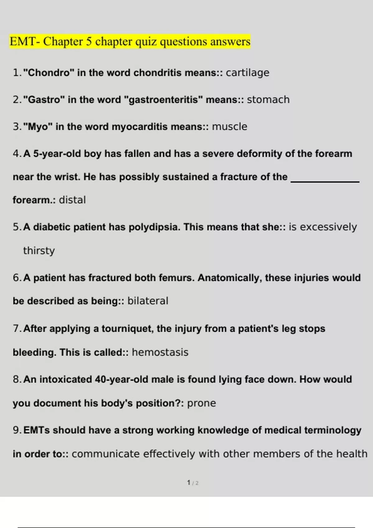 EMT- Chapter 5 Exam Questions and Answers (2022/2023) (Verified Answers)