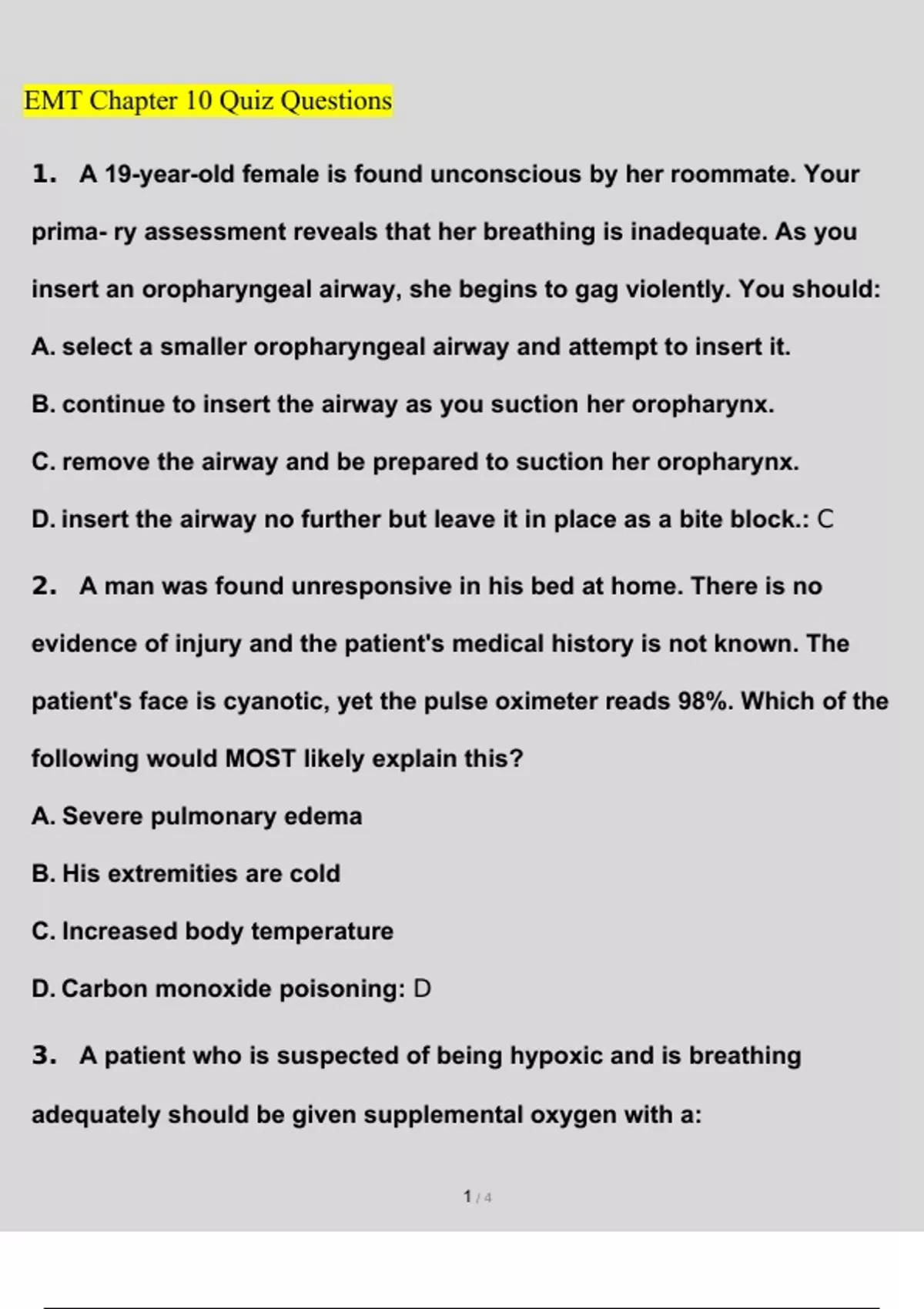 EMT Chapter 10 Exam Questions and Answers (2022/2023) (Verified Answers)