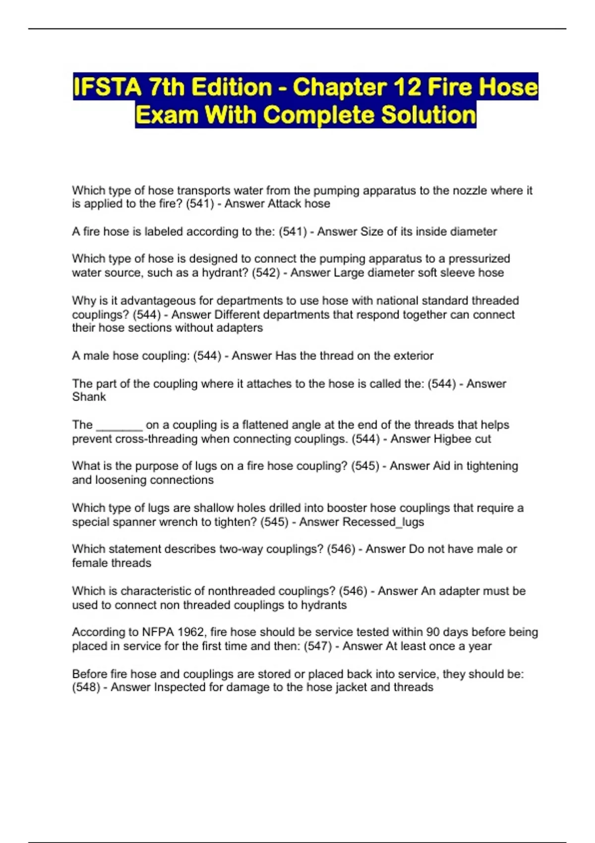 IFSTA 7th Edition - Chapter 12 Fire Hose Exam With Complete Solution