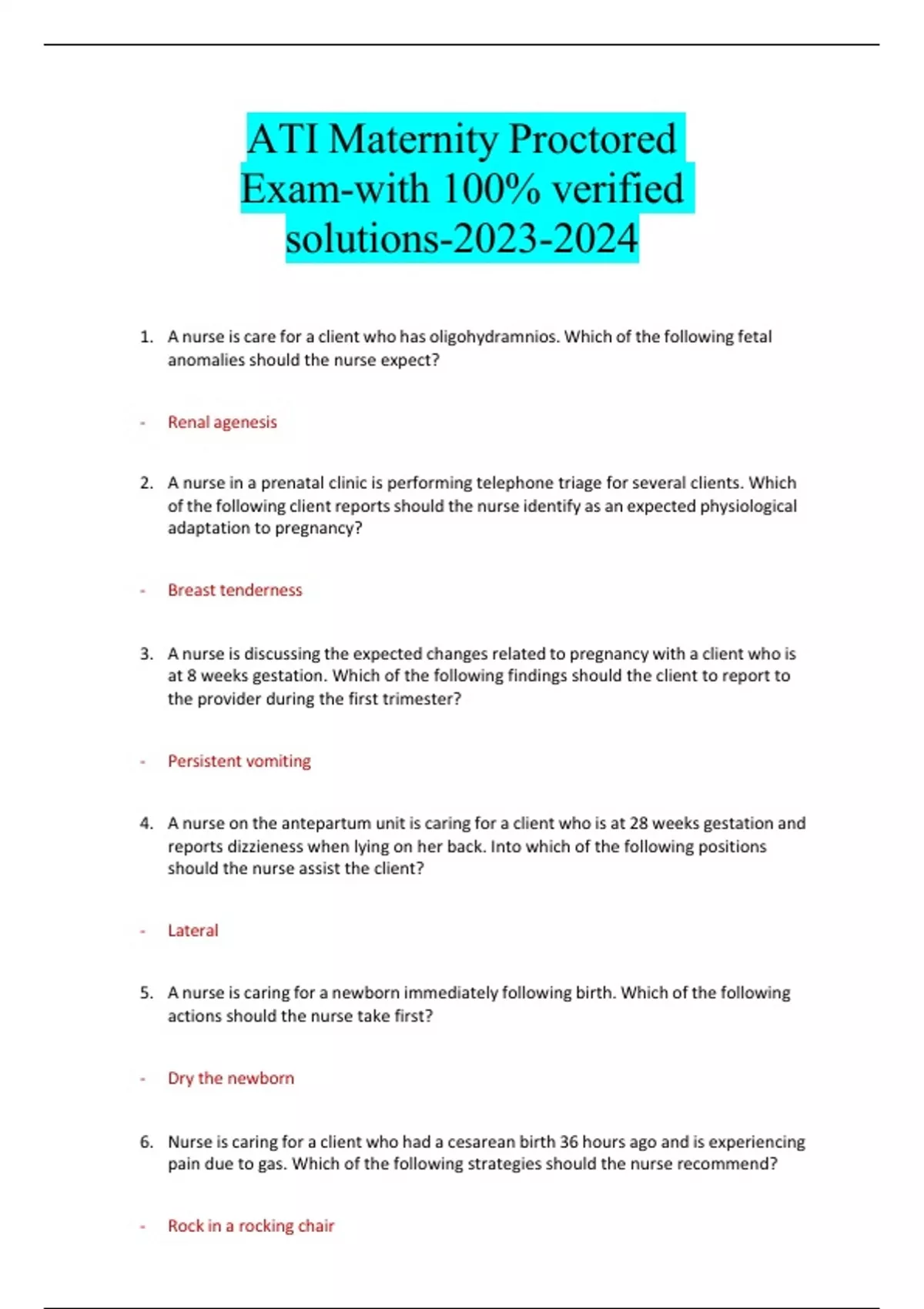 ATI Maternity Proctored Exam-with 100% verified solutions-