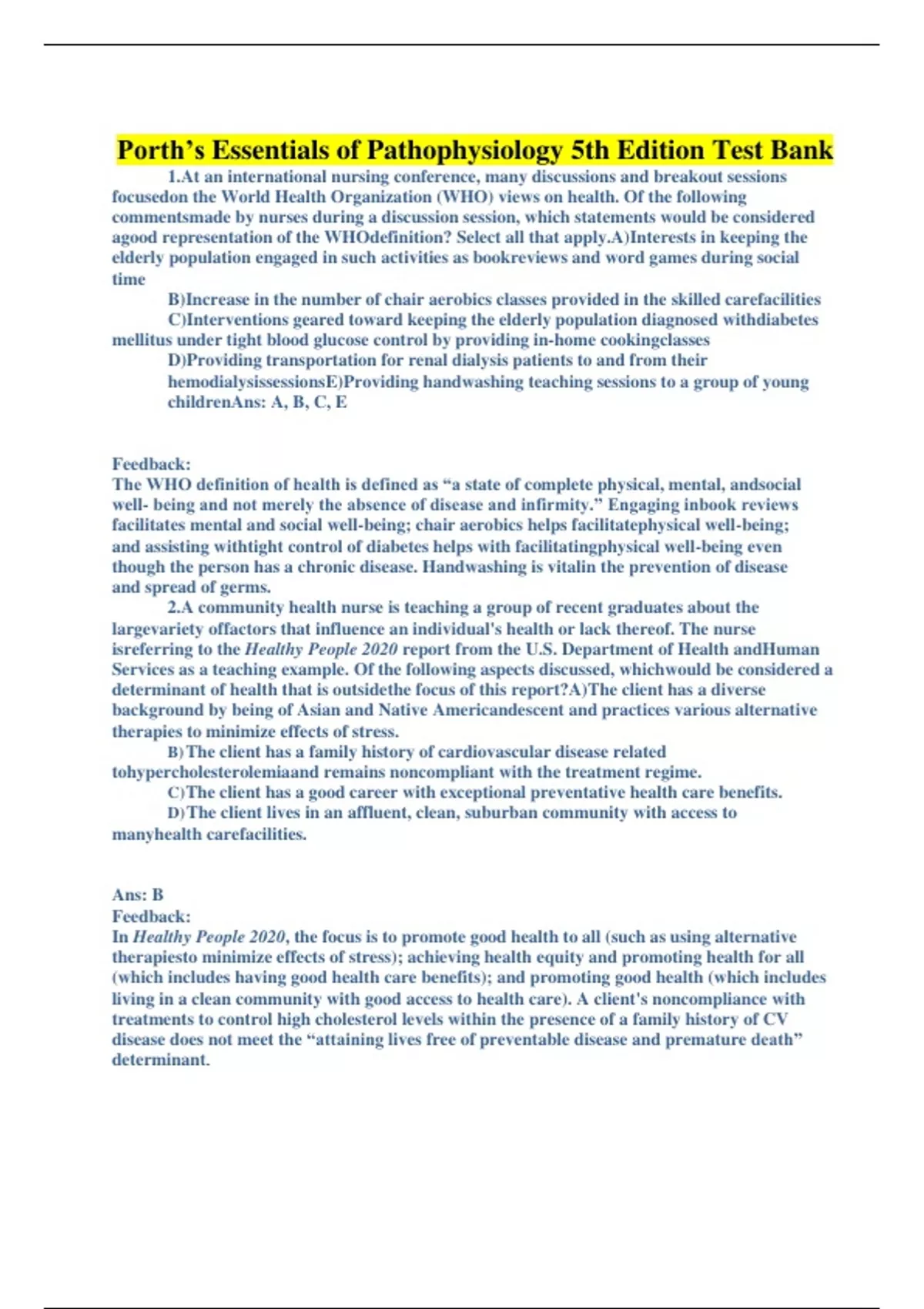 porth’s essentials of pathophysiology 5th edition test bank