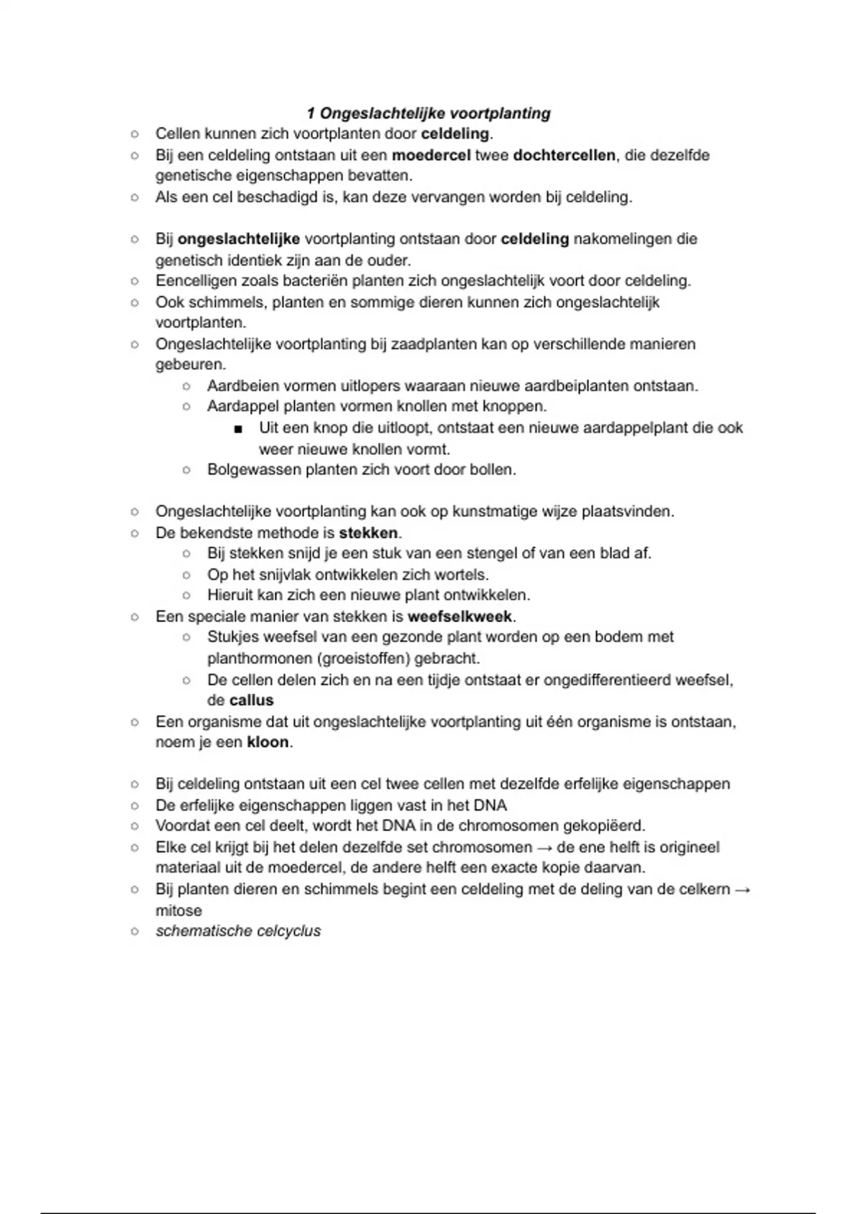 ○ Bij ongeslachtelijke voortplanting ontstaan door celdeling nakomelingen die