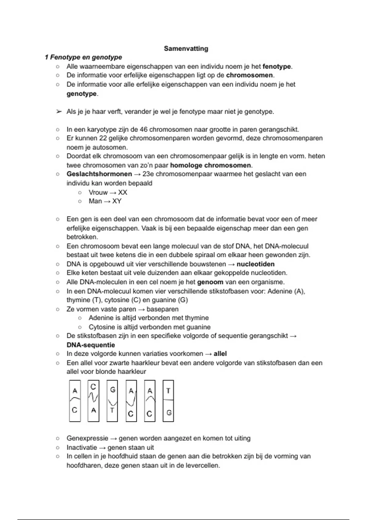 ○ De informatie voor alle erfelijke eigenschappen van een individu noem je het