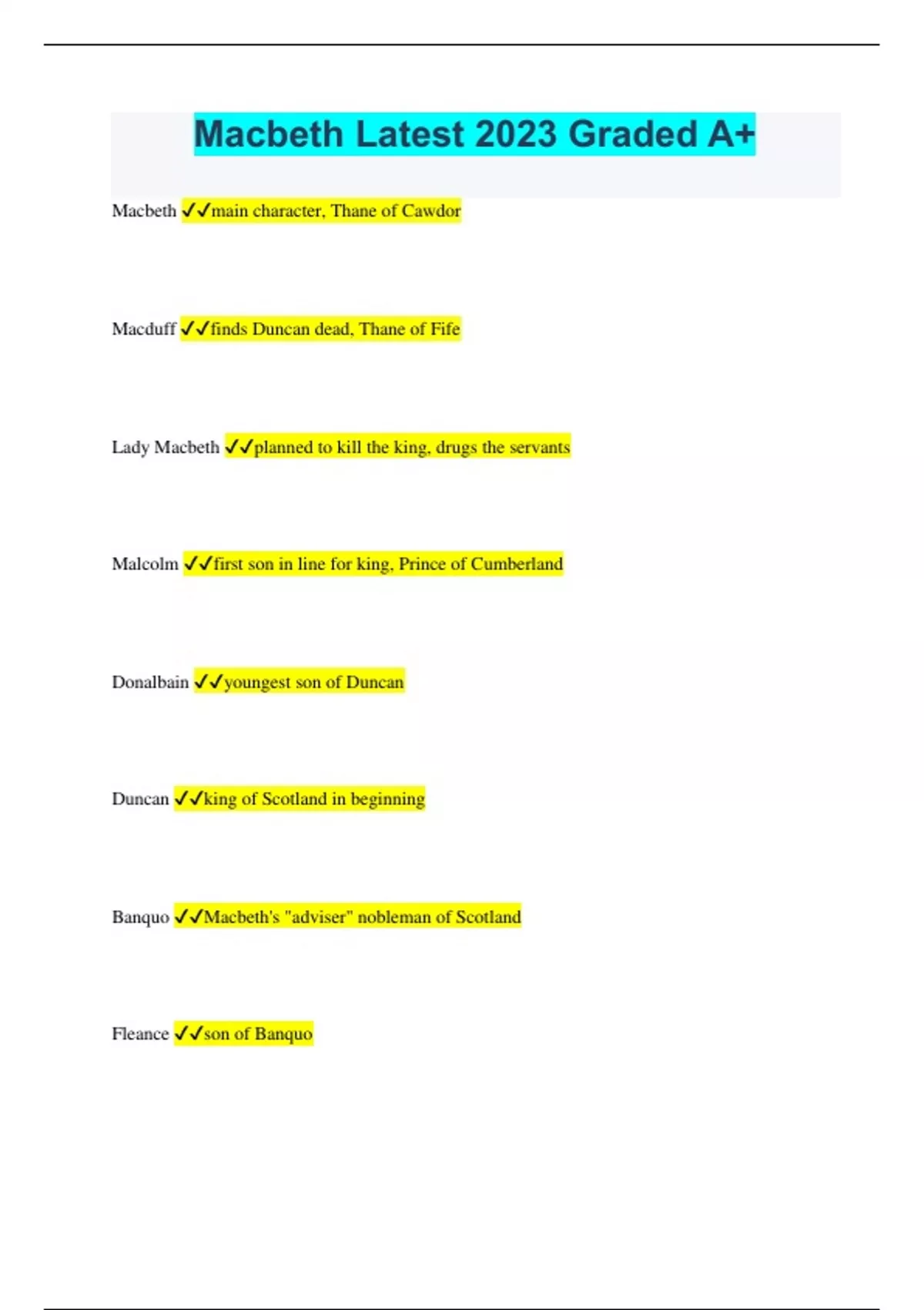 Macbeth Latest 2023 Graded A+