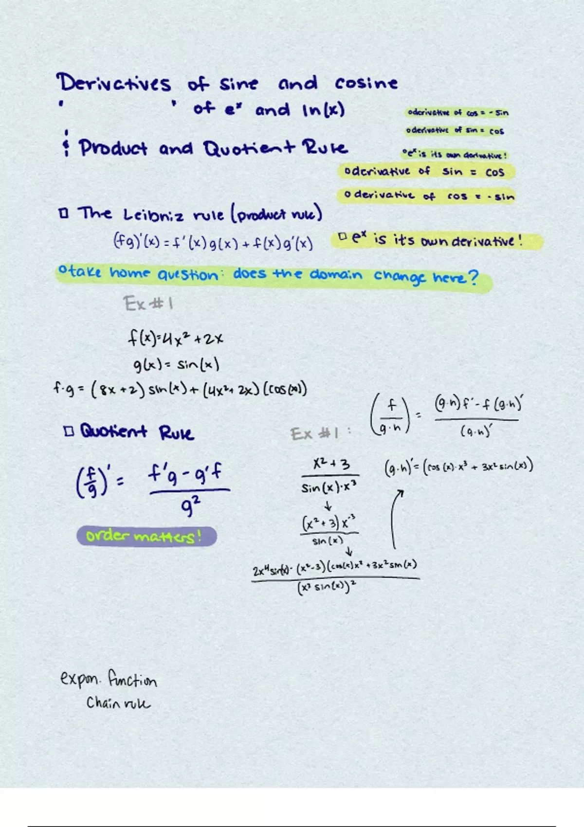 Derivatives and Product/Quotient Rule