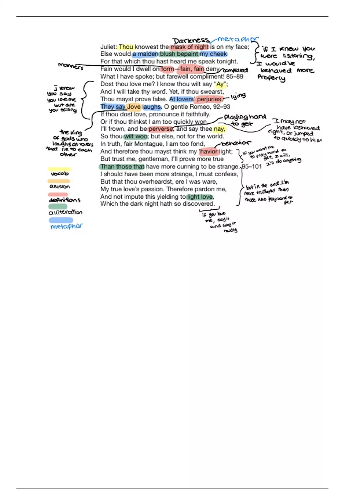 An in-depth annotated note of Juliet’s soliloquy in Act 2 Scene 2 of ‘Romeo and Juliet” by Shakespeare.