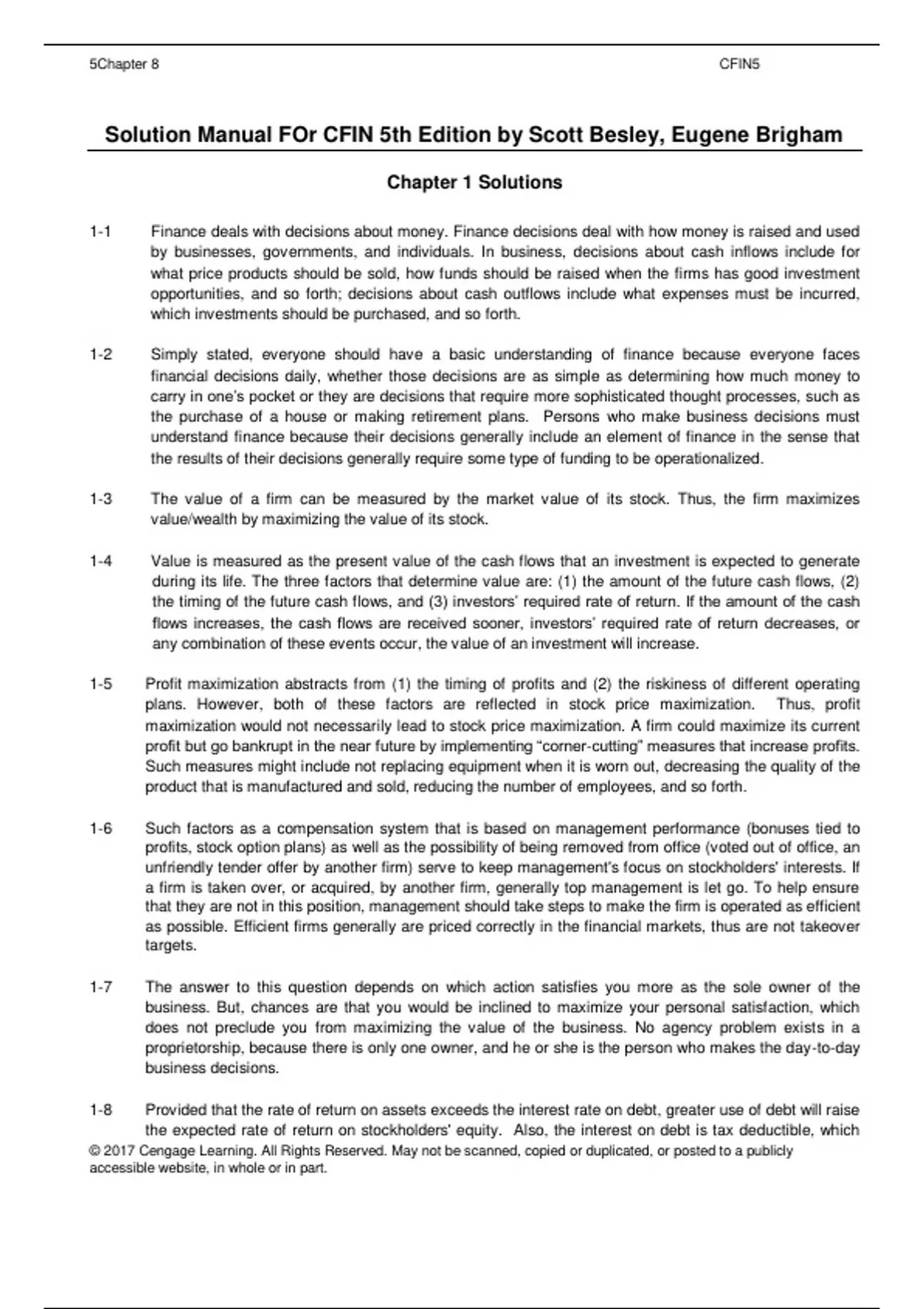 solution manual for cfin 5th edition by scott besley