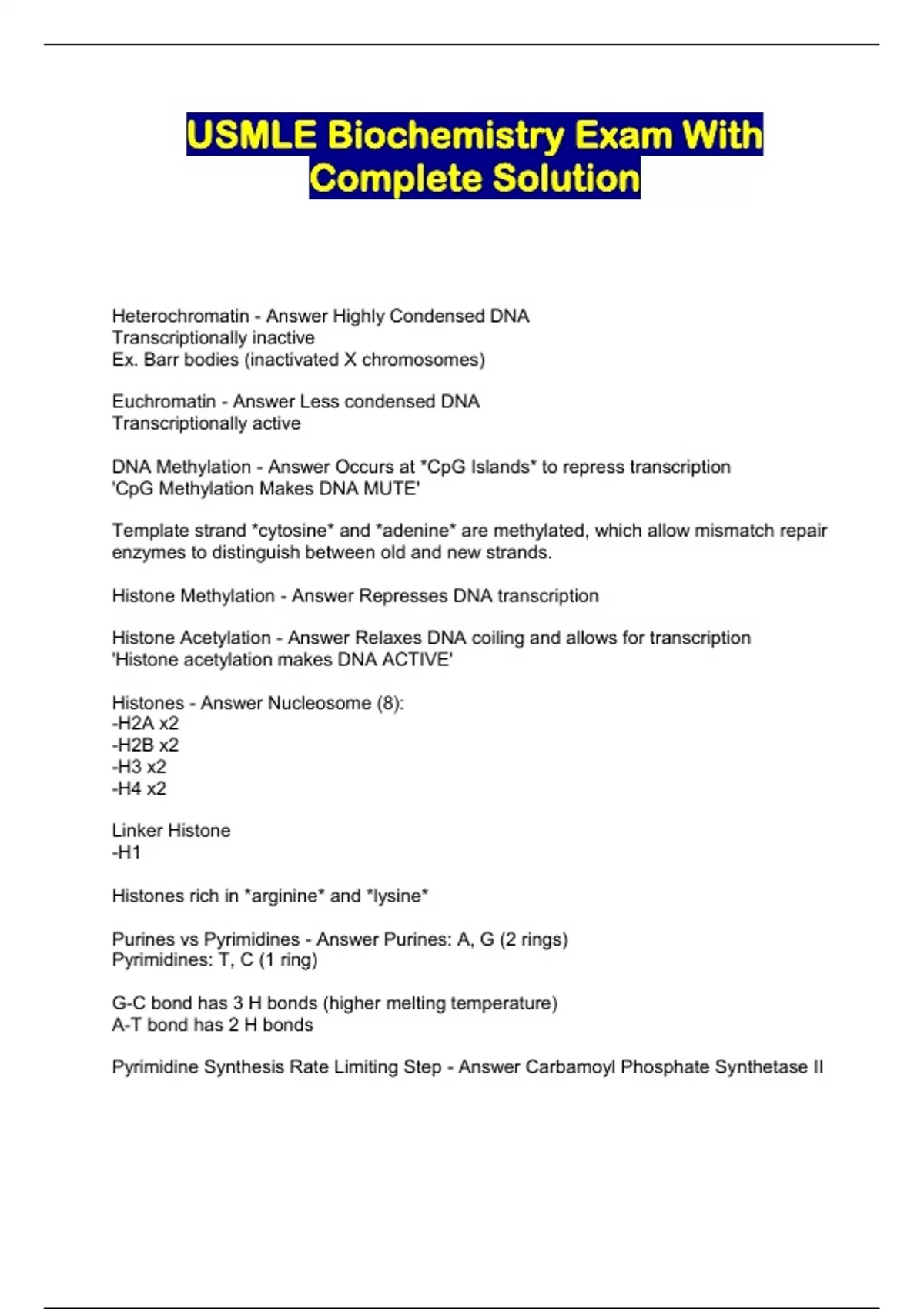 USMLE Biochemistry Exam With Complete Solution