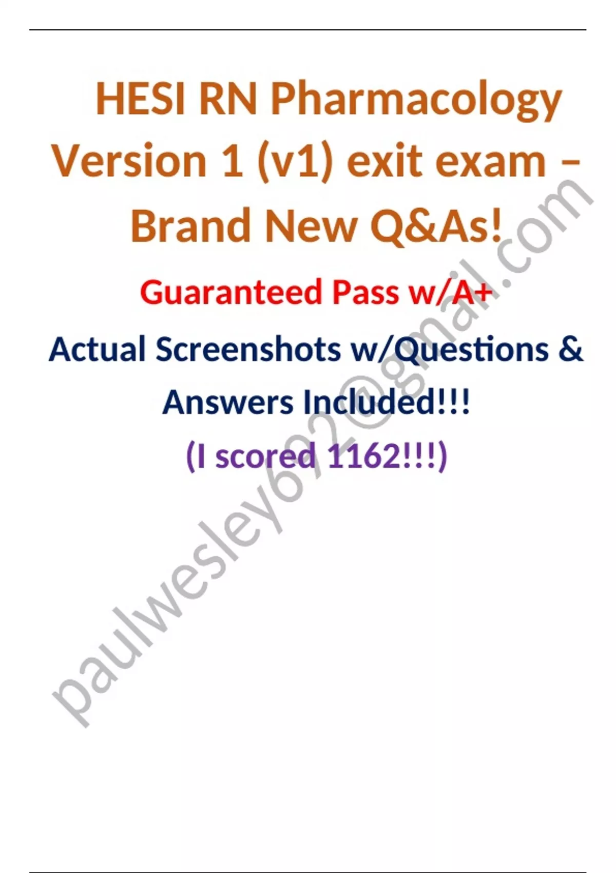 HESI RN Pharmacology Version 1 (v1) exit exam – Brand New Q&As! Guaranteed Pass w/A+ Actual Screenshots w/Questions & Answers Included!!! (I scored 1162!!!)