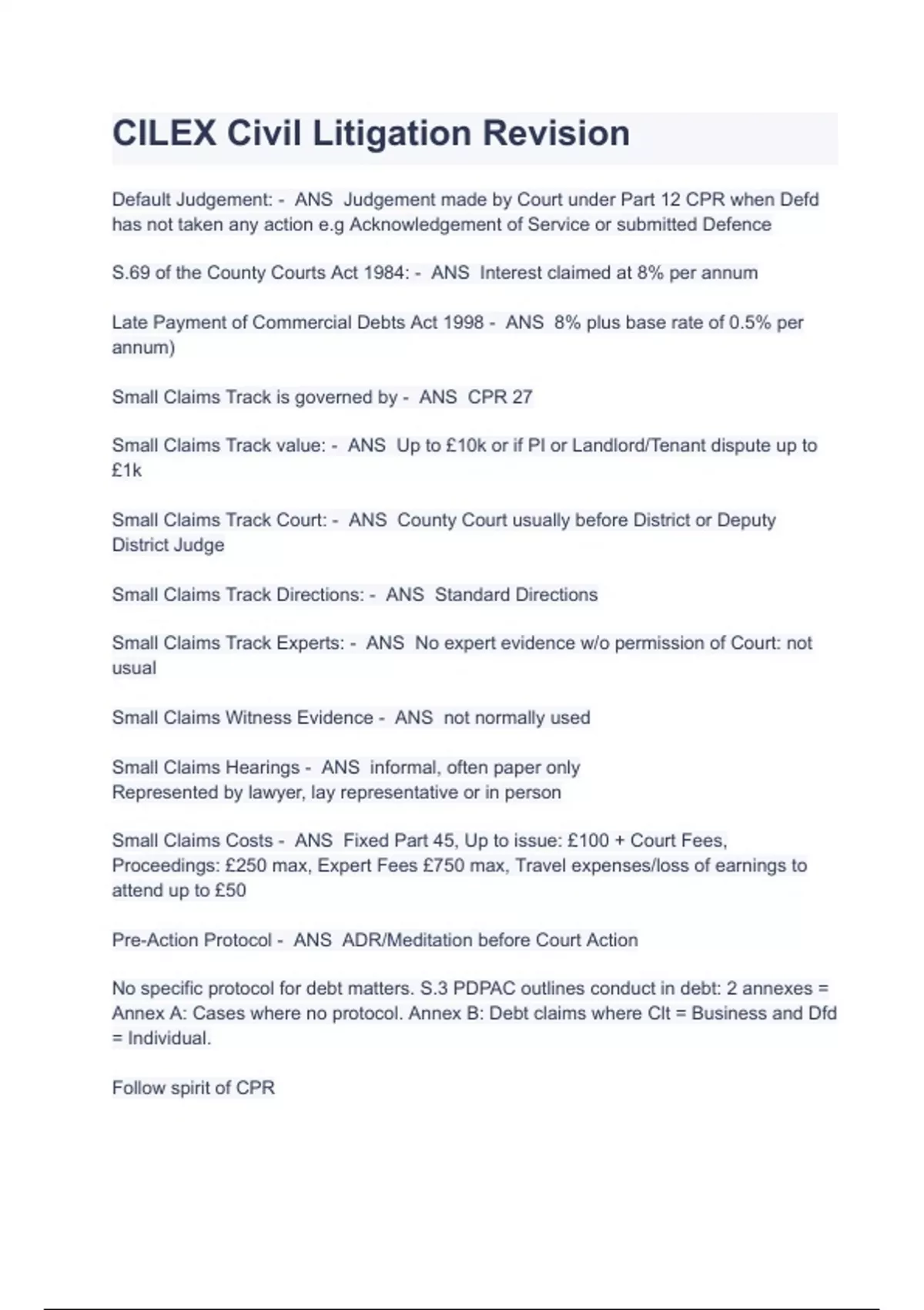 LPC Notes CILEX Civil Litigation Revision