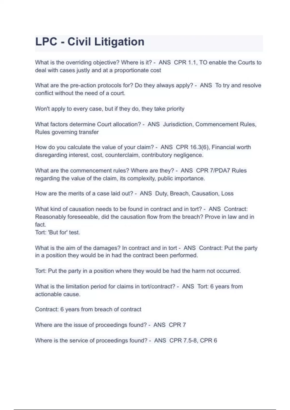 What is the limitation period for claims in tort/contract? - ANS Tort: 6 years from