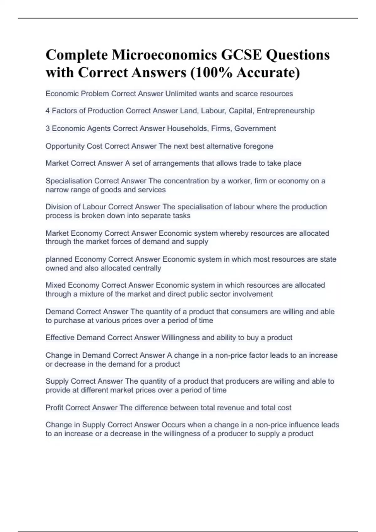Complete Microeconomics GCSE Questions with Correct Answers (100% Accurate)