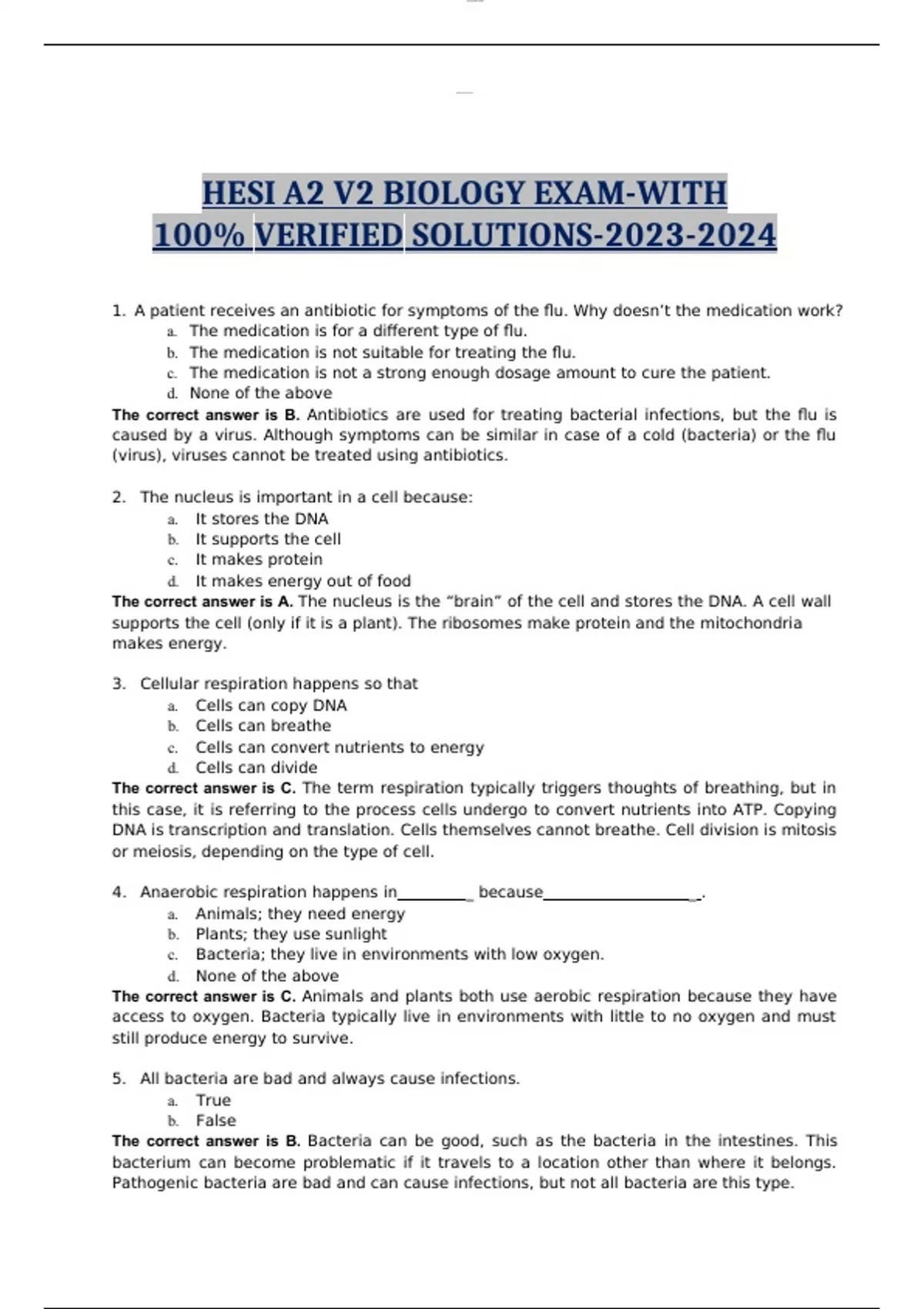 hesi a2 v2 biology exam with 100 verified solutions 2023 2024