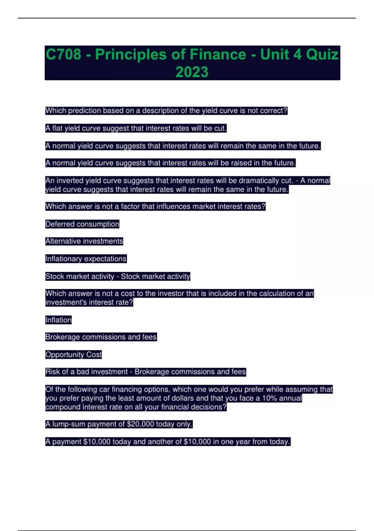- C708 - Principles of Finance
