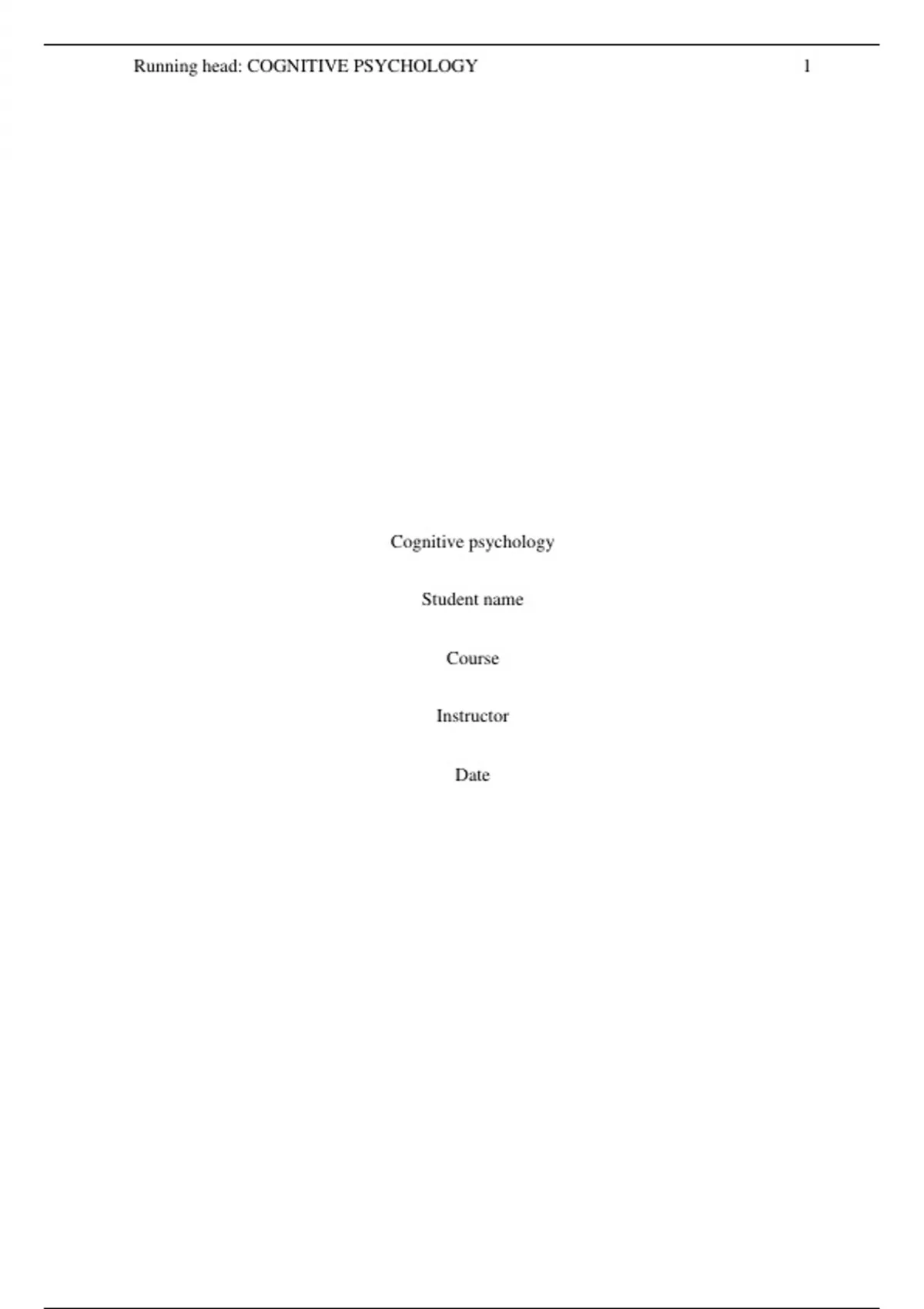 A 2-page APA document on Cognitive psychology with major focus in education.