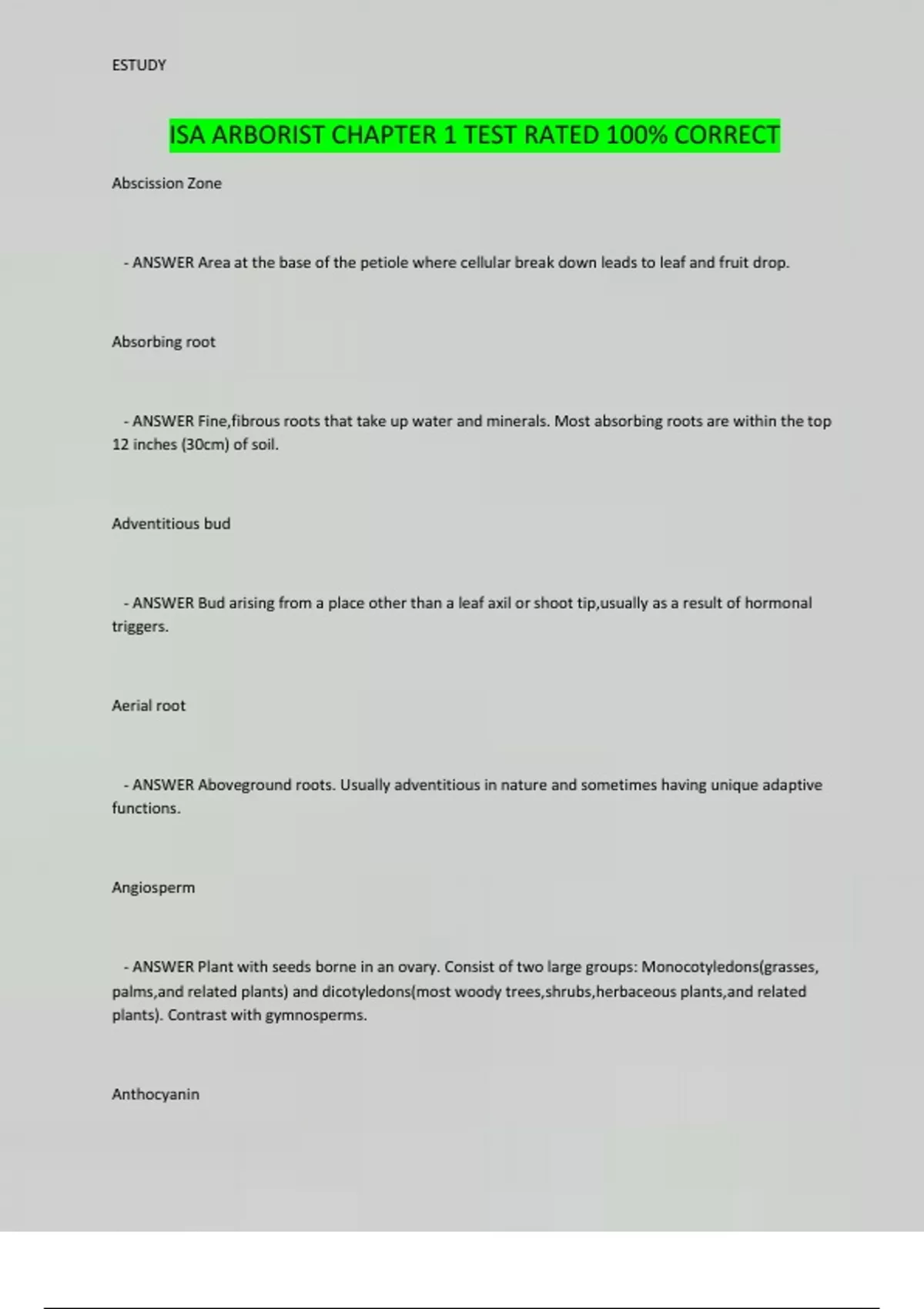 ISA ARBORIST CHAPTER 1 TEST RATED 100% CORRECT