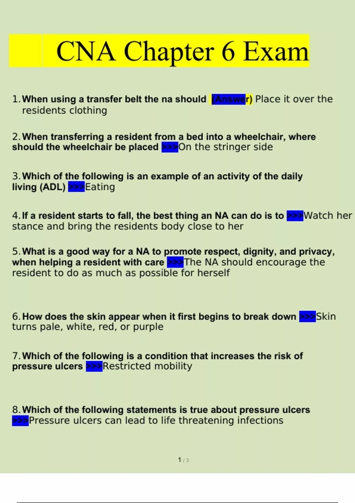 CNA Chapter 6 Exam Questions and Answers 2023 (Verified Answers by Expert) CNA Chapter 6 Exam Questions and Answers 2023 (Verified Answers by Expert)