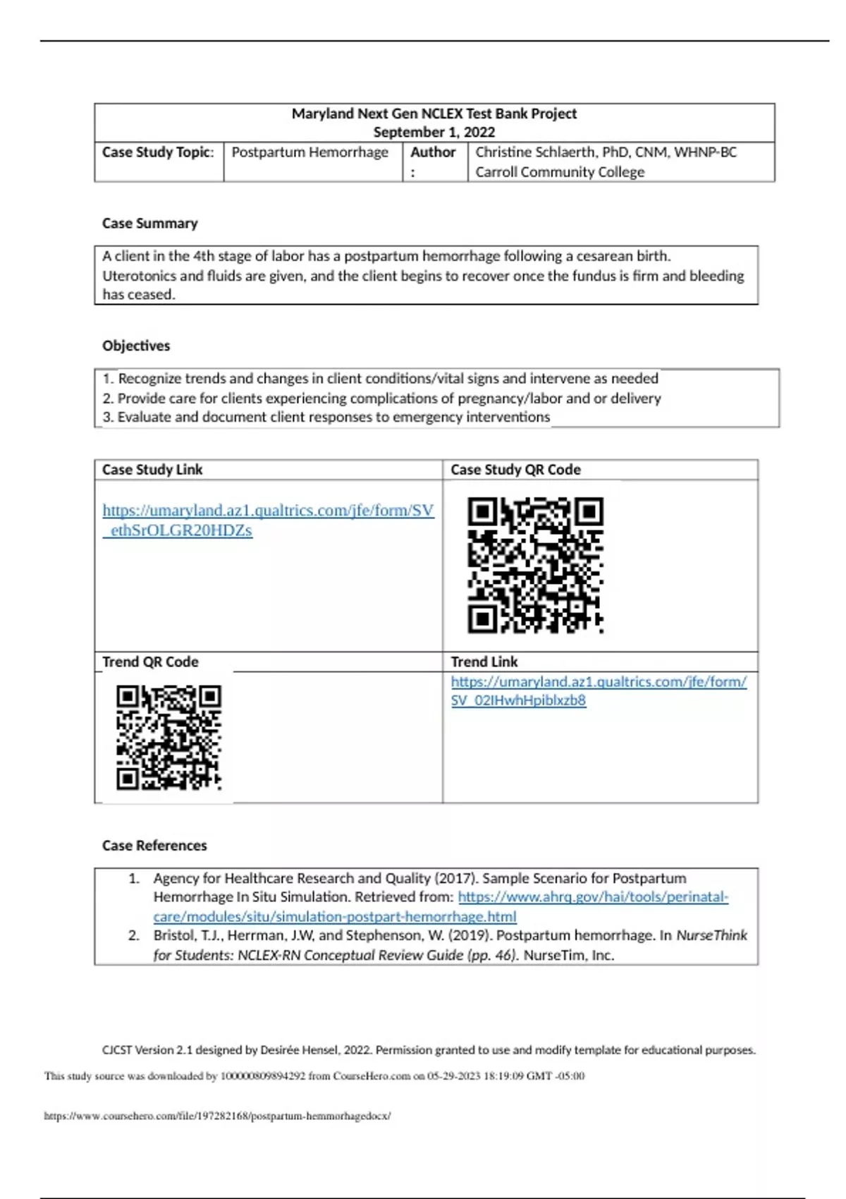 Maryland Next Gen NCLEX Test Case Study Topic: Postpartum Hemorrhage (answered).