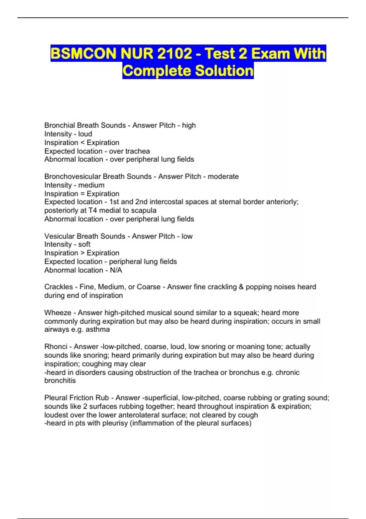 BSMCON NUR 2102 - Test 2 Exam With Complete Solution