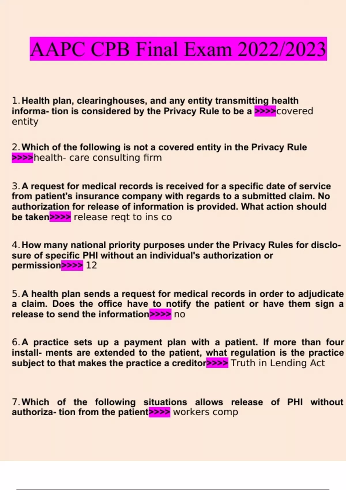 AAPC CPB Final questions and answers(2023) (verified answers)