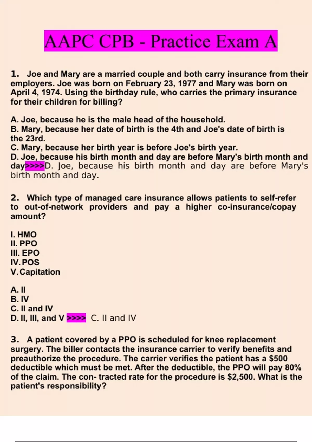 AAPC CPB - Practice Exam A questions and answers(2023) (verified answers)