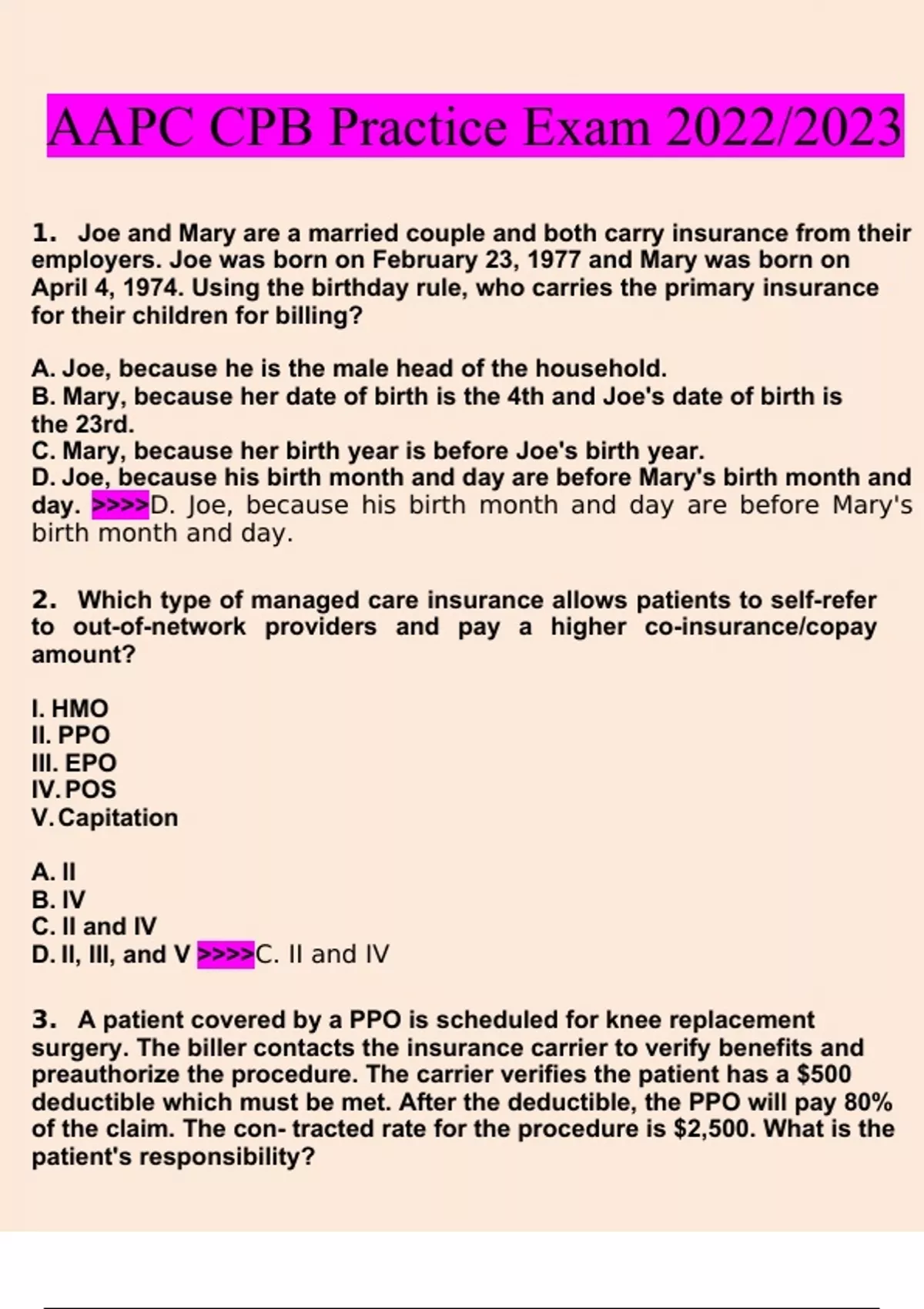 aapc cpb practice exam questions and answers2023 verified answers