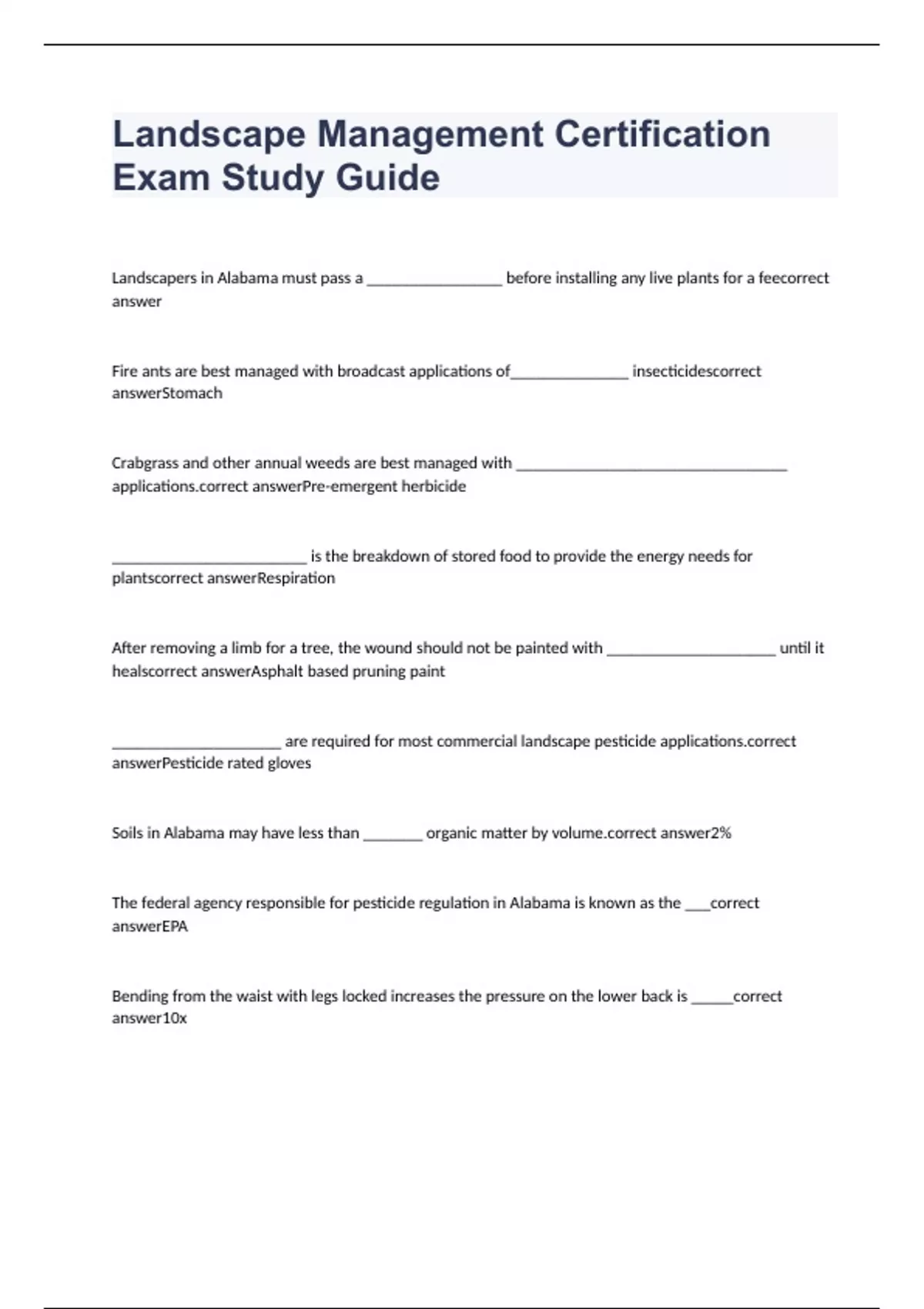 landscape management certification exam study guide questions with correct answers