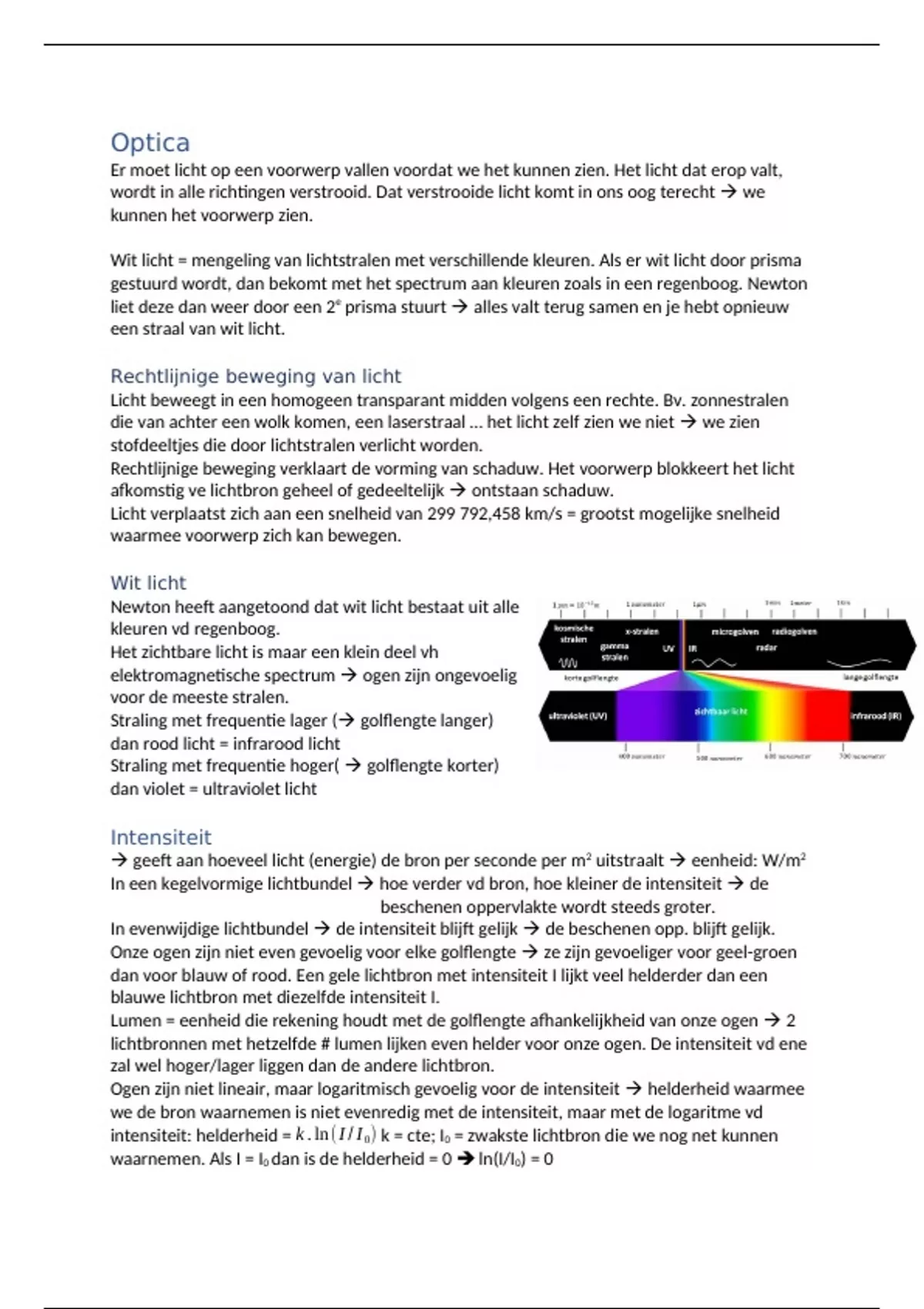 intensiteit: helderheid = k . ln ( I / I 0) k = cte; I0 = zwakste lichtbron die we nog net kunnen