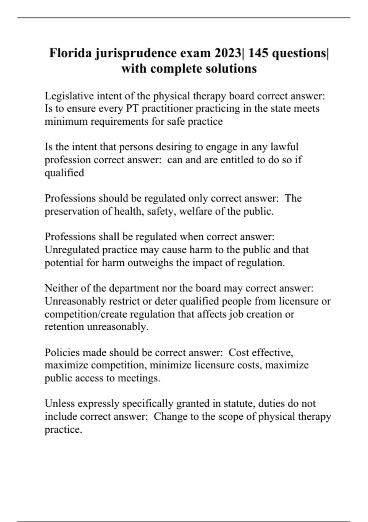 Florida jurisprudence exam 2023| 145 questions| with complete solutions