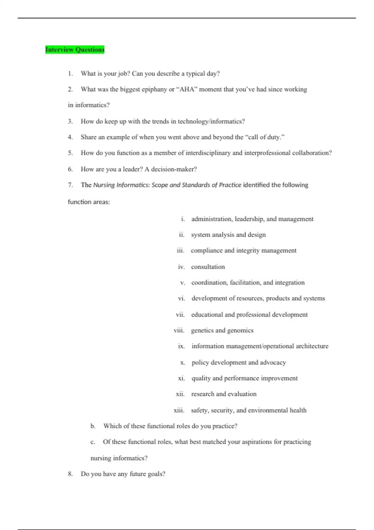 NR 541 Week 2 Assignment; INS Interview Questions