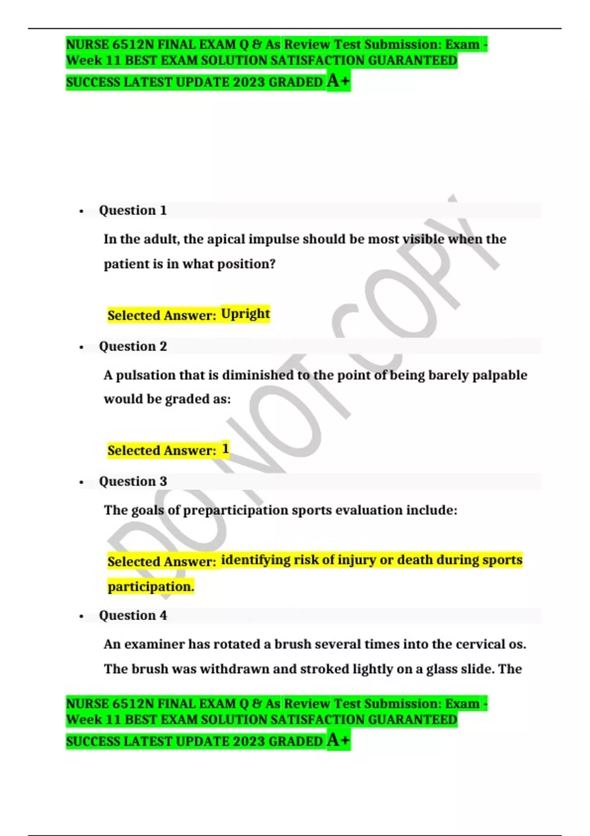 NURSE 6512N FINAL EXAM Q & As Review Test Submission: Exam - Week 11 BEST EXAM SOLUTION SATISFACTION GUARANTEED SUCCESS LATEST UPDATE 2023 GRADED A+