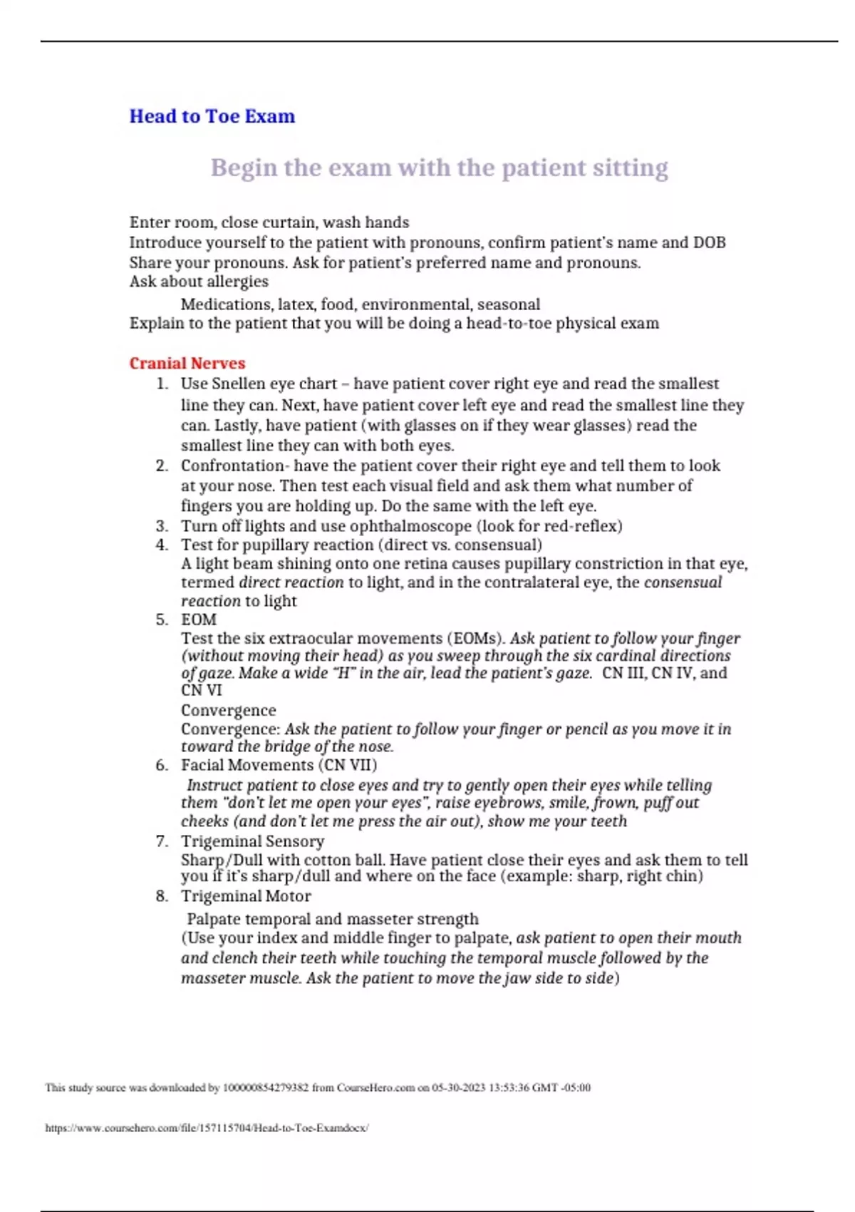head to toe exam begin the exam with the patient sitting