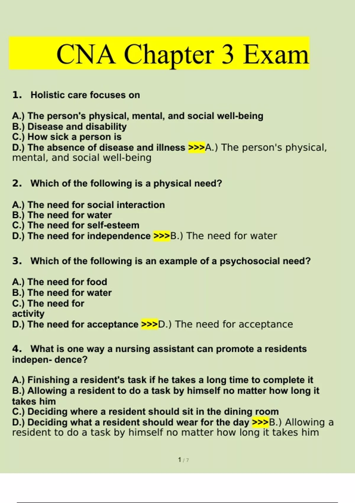 CNA Chapter 3 Exam Questions and Answers 2023 (Verified Answers by Expert)