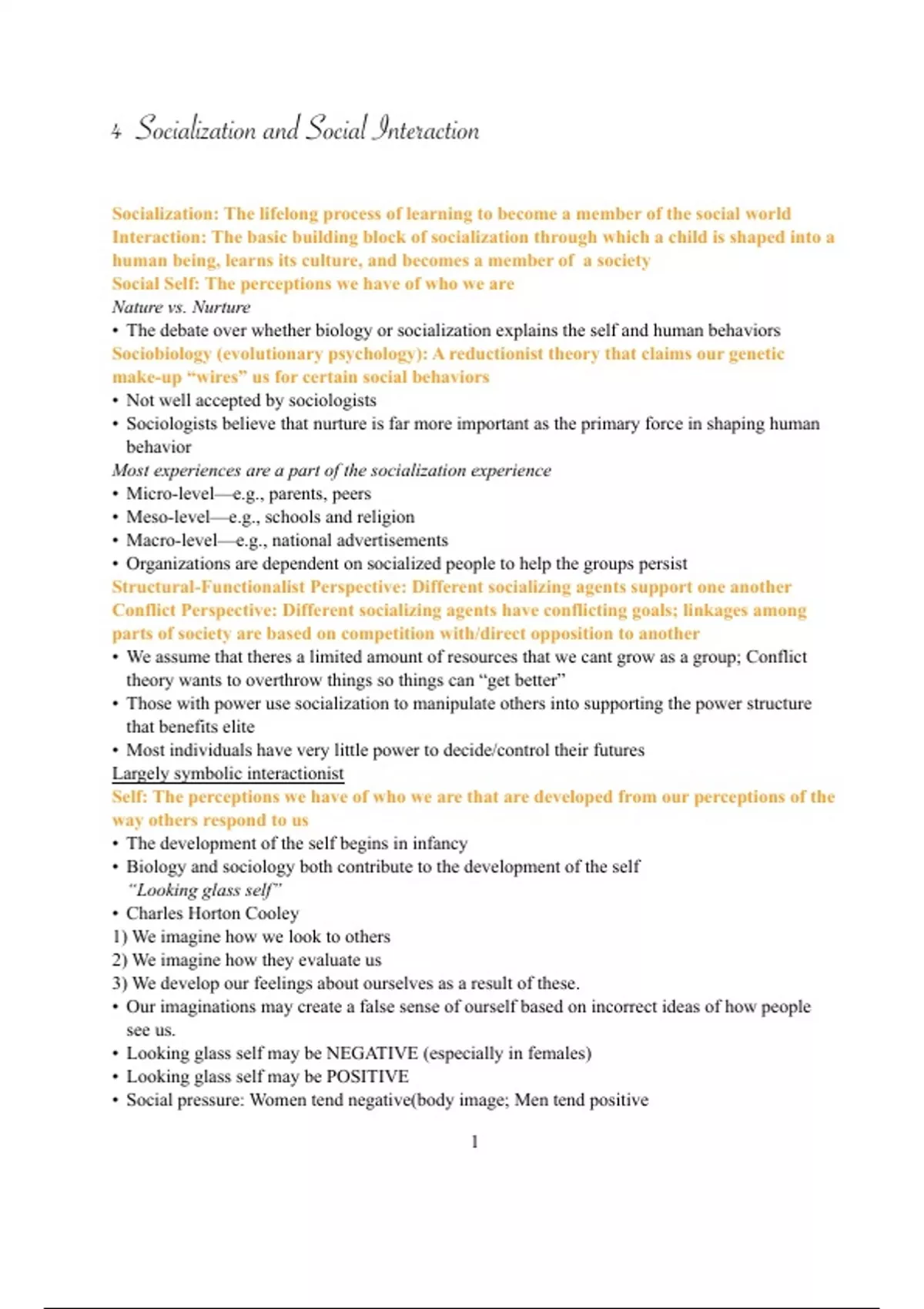SOC 101: Chapter 4- Socialization and Social Interaction