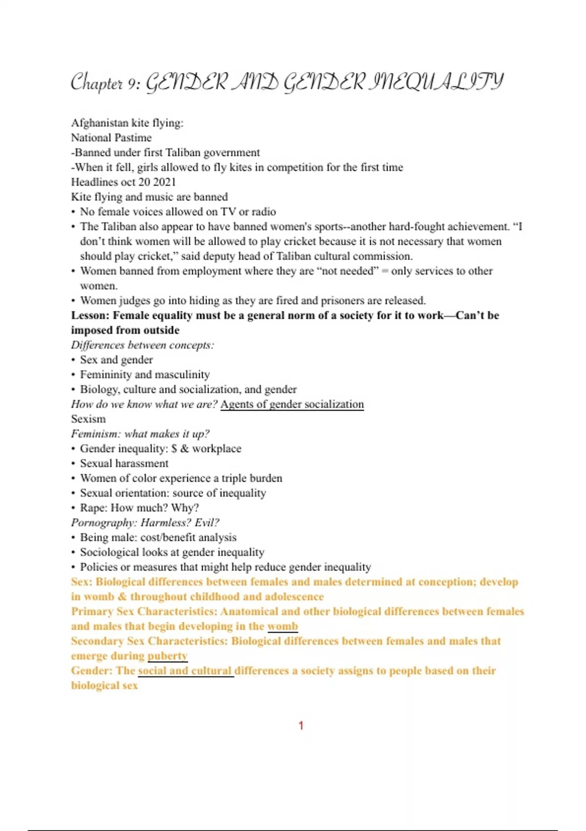 SOC 101: Chapter 9- Gender and Gender Inequality