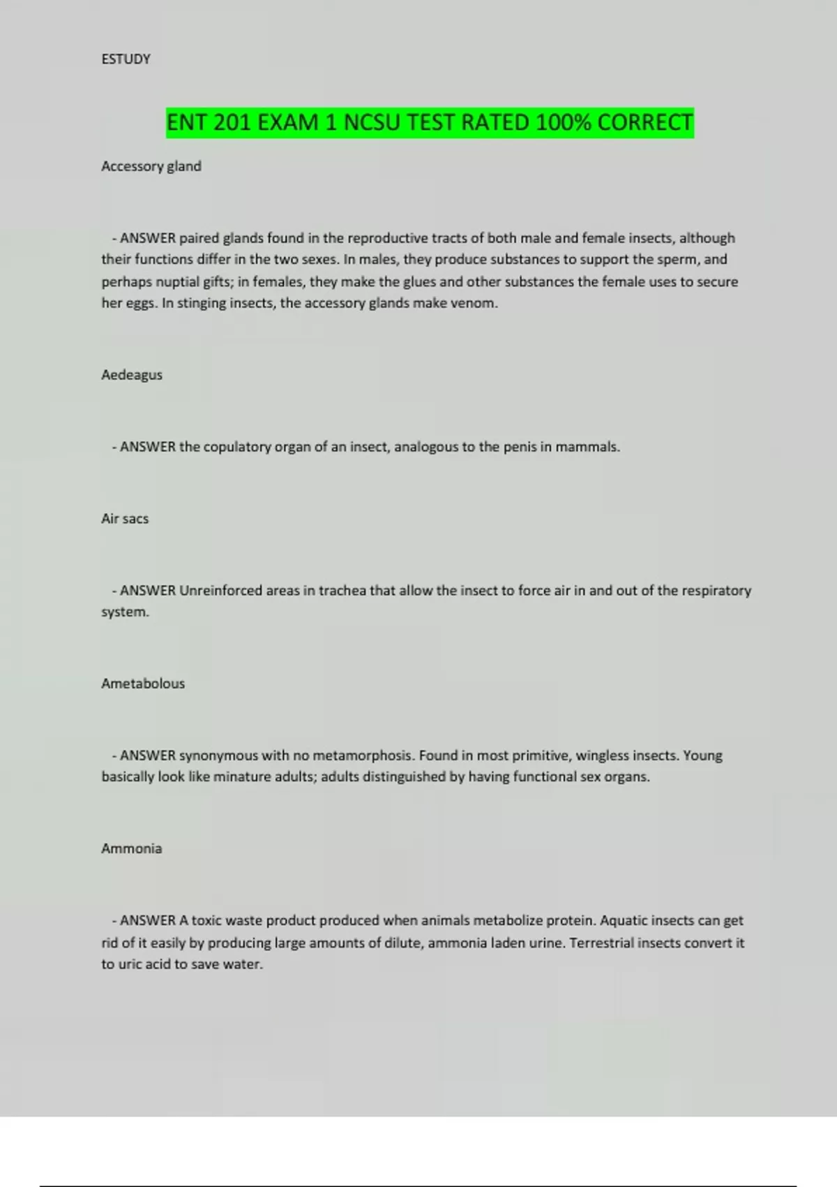 ent 201 exam 1 ncsu test rated 100 correct
