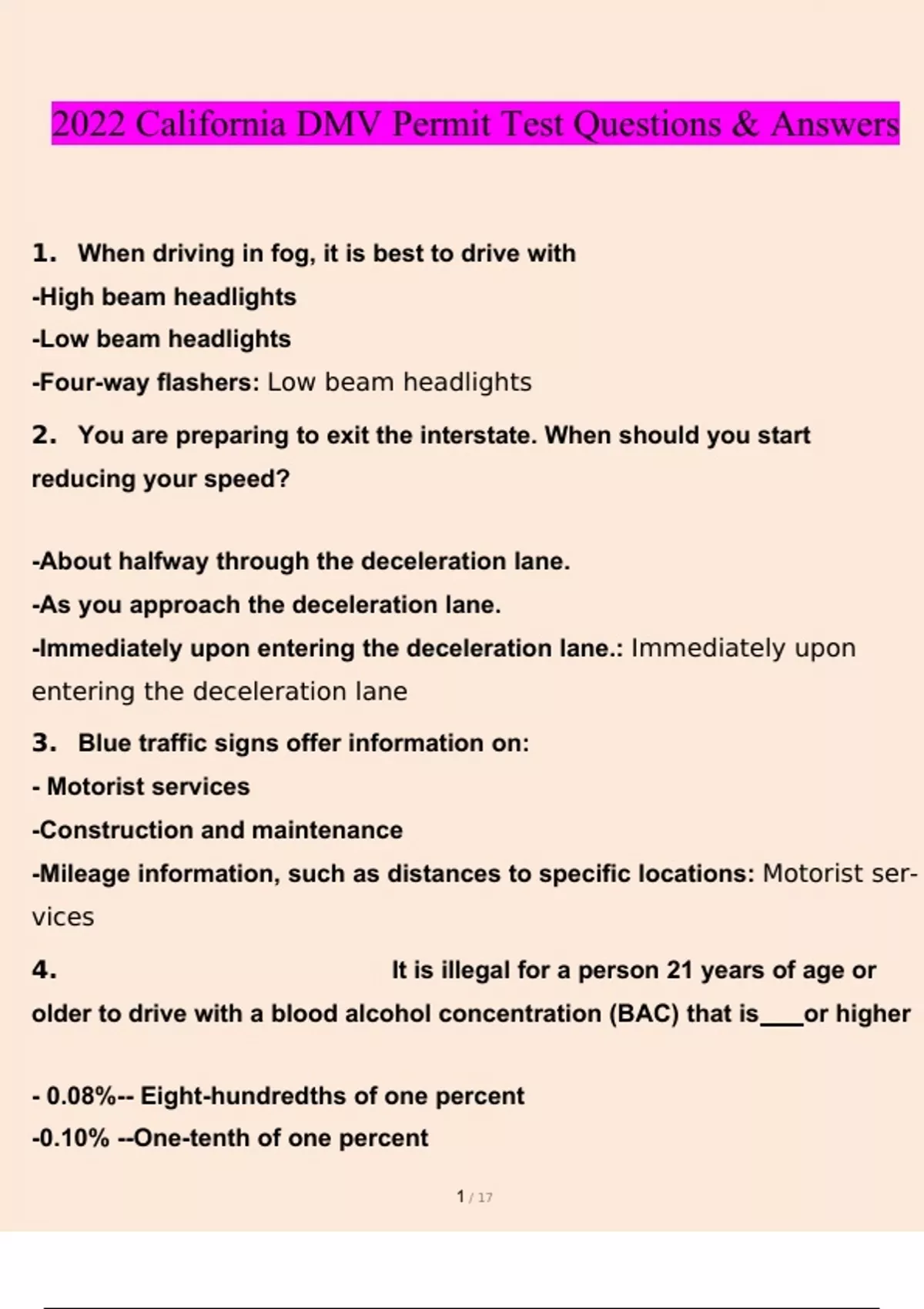 2022 California DMV Permit Test questions and answers(2023) (verified answers)