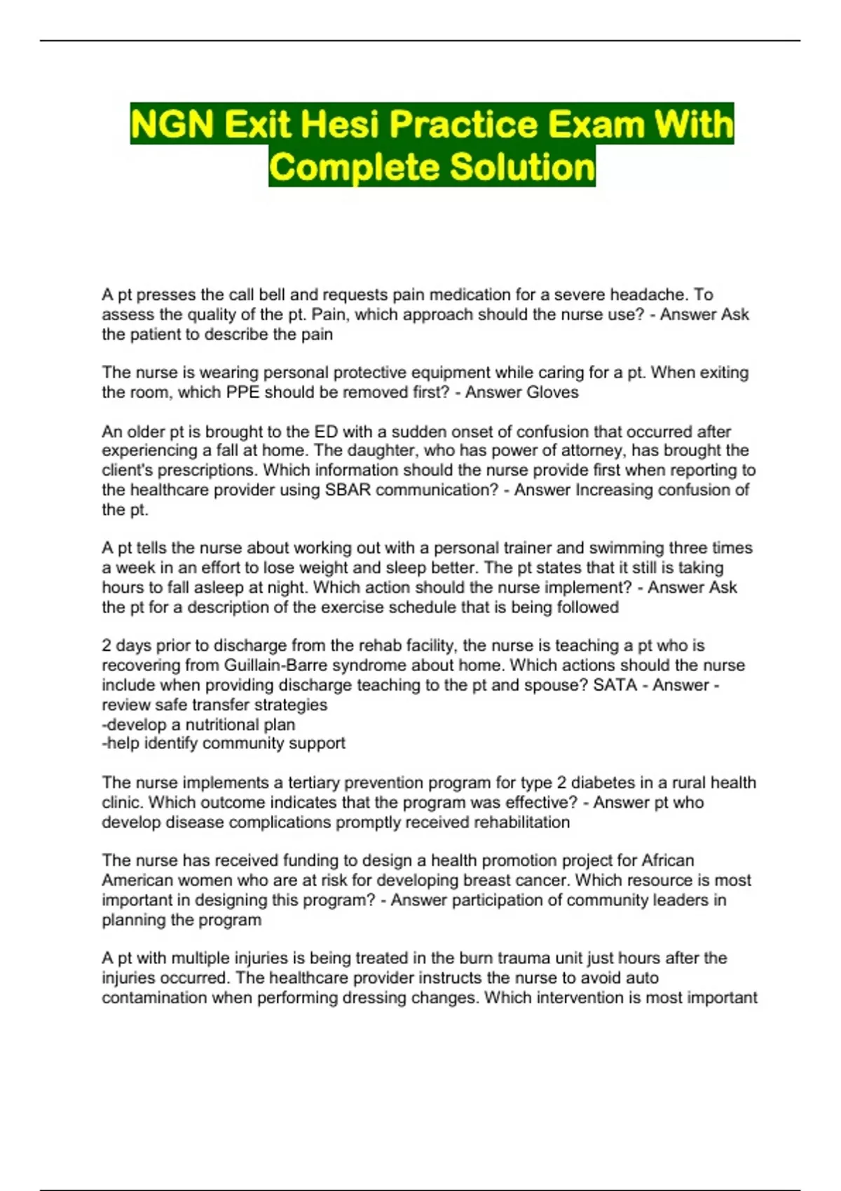 NGN Exit Hesi Practice Exam With Complete Solution...
