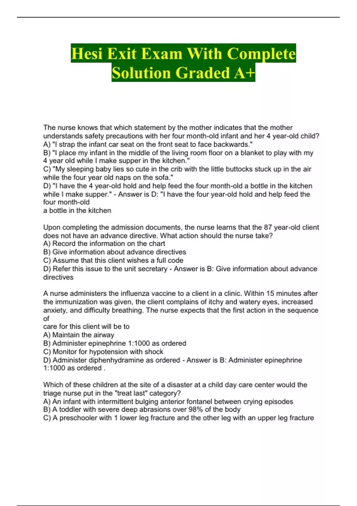 ALL EXIT HESI PACKAGED EXAMS WITH COMPLETE SOLUTION GRADED A (everything you need is here)