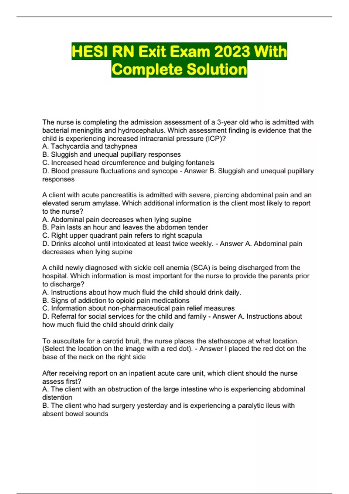 HESI RN Exit Exam 2023 With Complete Solution...