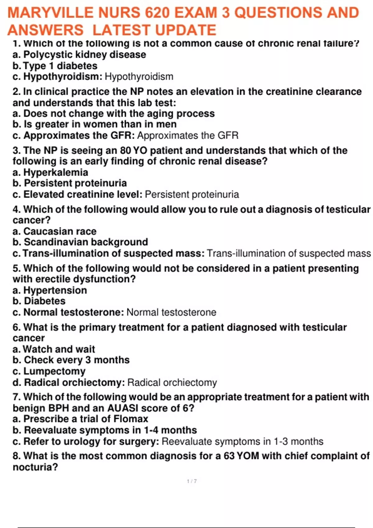 Maryville NURS 620 Adult 1 EXAM 3 questions well solved 100% correct