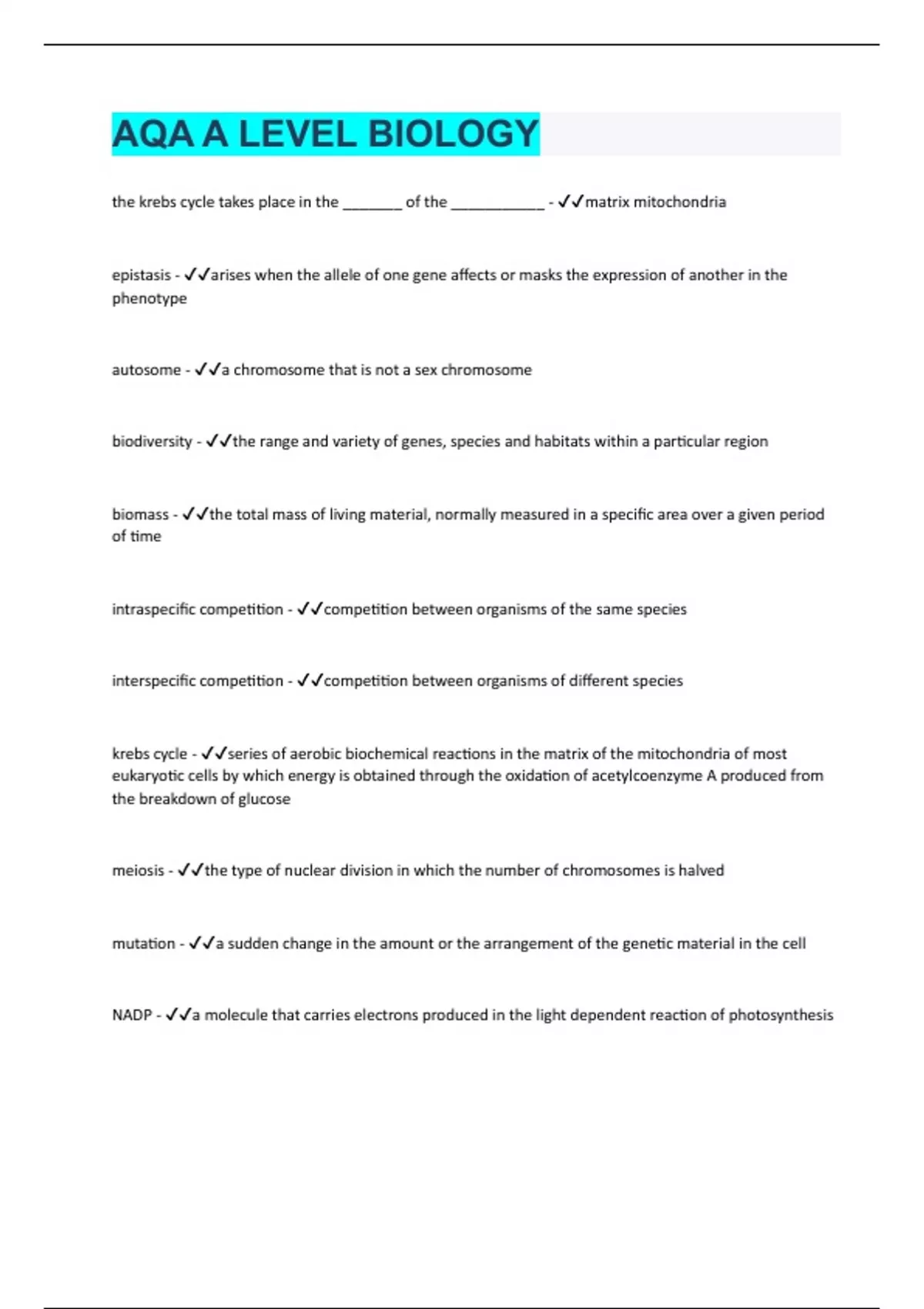 - AQA A LEVEL BIOLOGY