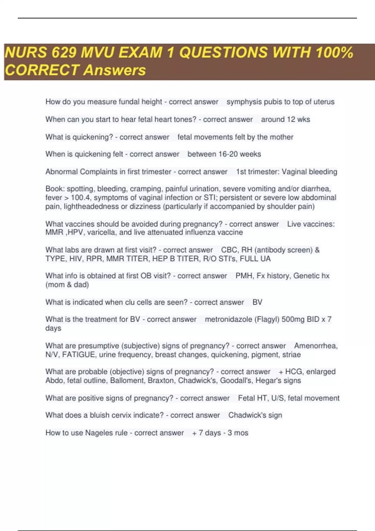 nurs 629 exam 1 mvu latest questions with 100 correct answers