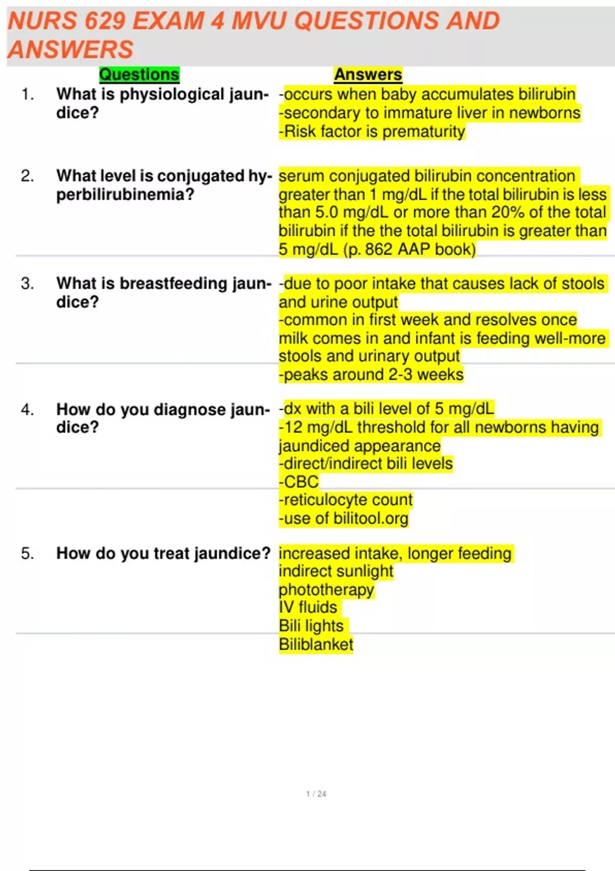 nurs 629 exam 4 mvu questions with 100 correct answers