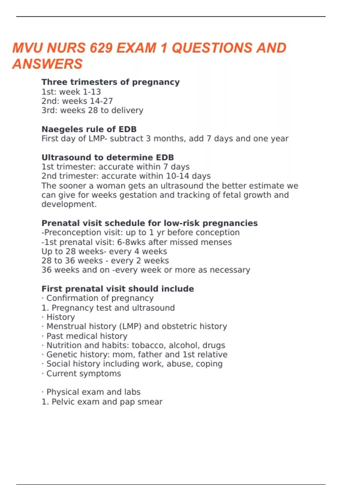 nurs 629 exam 1 mvu questions with 100 correct answers