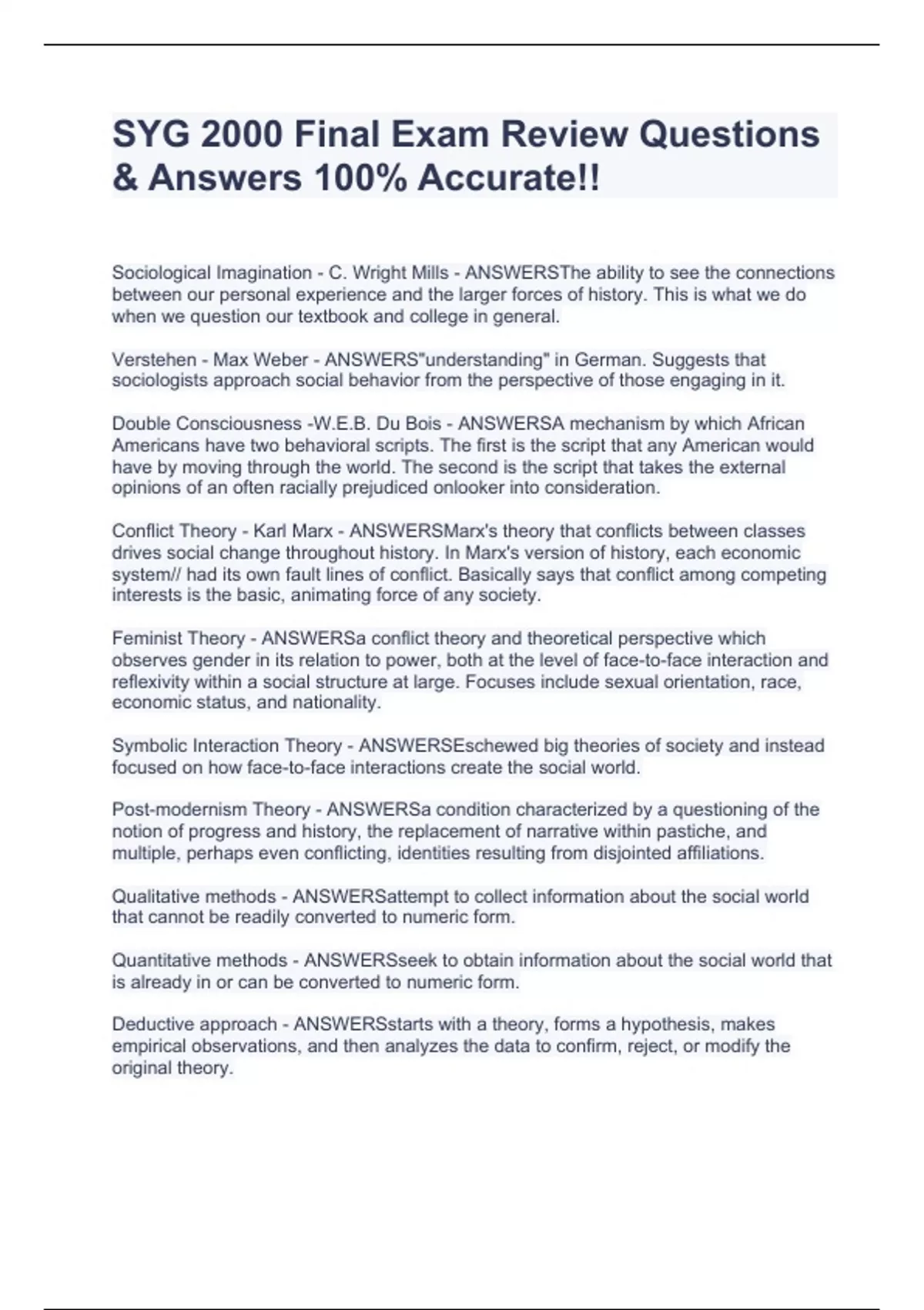 SYG 2000 Final Exam Review Questions & Answers 100% Accurate!!