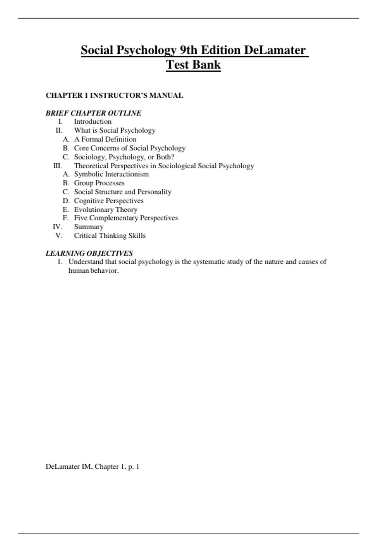 Test Bank for Social Psychology 9th Edition DeLamater / All Chapters 1 - 17 / Full Complete