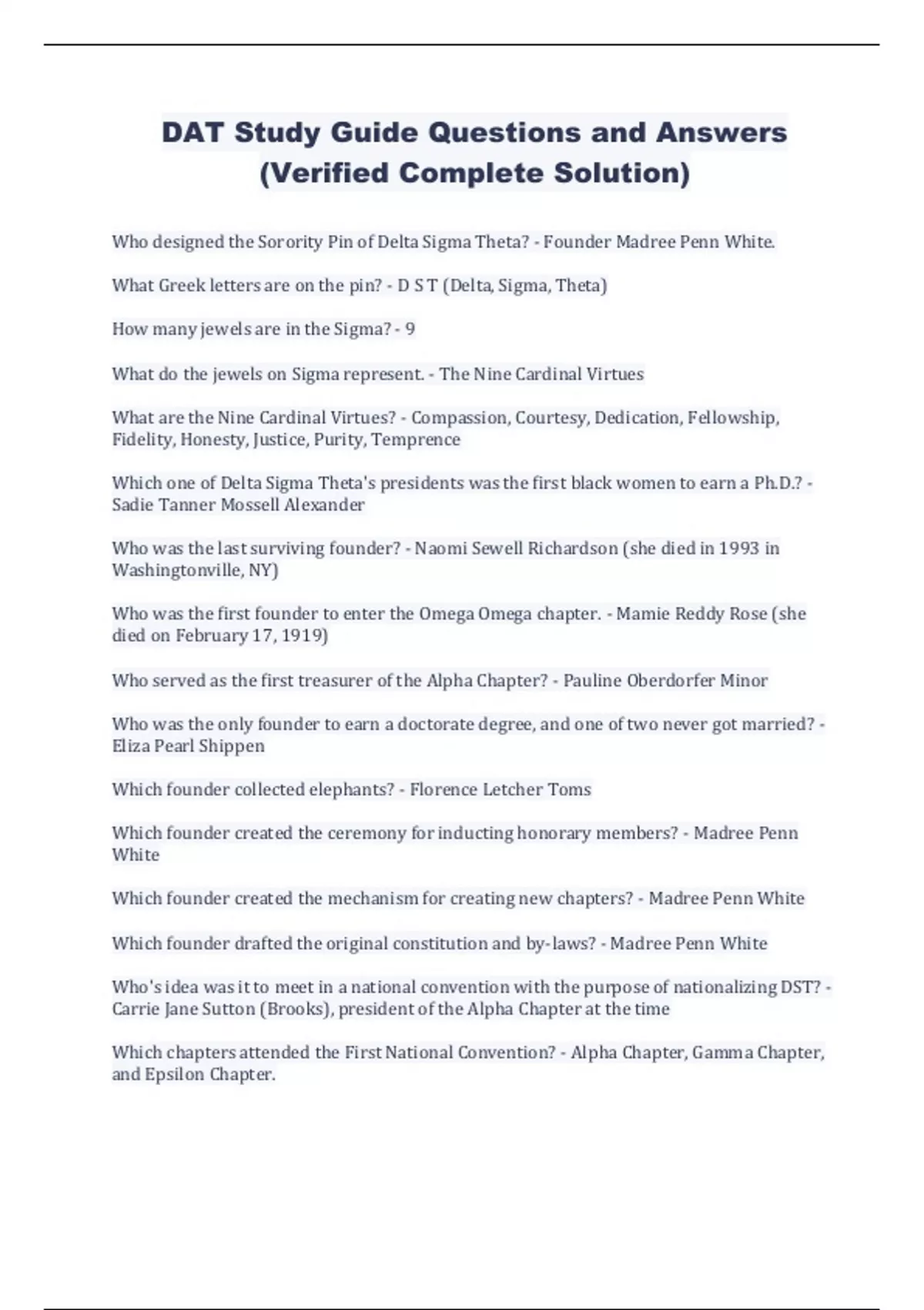 DAT Study Guide Questions and Answers (Verified Complete Solution)
